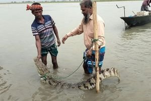 পদ্মা নদীতে বড়শিতে ধরা পড়ল কুমির