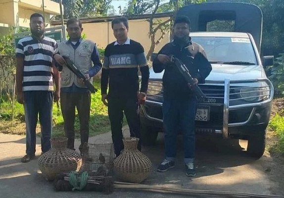 শীতে এই অঞ্চলে পাখির আনাগোনা বেড়ে যাওয়া শিকারিরা ফাঁদ পেতে পাখি শিকার করেন।বন্য প্রাণী ও প্রকৃতি সংরক্ষণ বিভাগের মৌলভীবাজার রেঞ্জ কর্মকর্তা শহিদুল ইসলাম বলেন, তাঁদের যাওয়ার খবর পেয়ে পাখিশিকারিরা পালিয়ে যান। পরে এলাকার লোকজনের কাছ থেকে তথ্য নিয়ে পাখিশিকারি হারিস মিয়ার বাড়ি থেকে তিনটি পাখি (শালিক, ঘুঘু ও বক) উদ্ধার করা হয়েছে। এ সময় পাখির খাঁচা এবং হারিসের বাড়ি থেকে একটু দূরের ঝোপঝাড় থেকে পাখি ধরার সরঞ্জাম উদ্ধার করা হয়েছে। এ ঘটনায় আইনি ব্যবস্থা নেওয়া হবে।