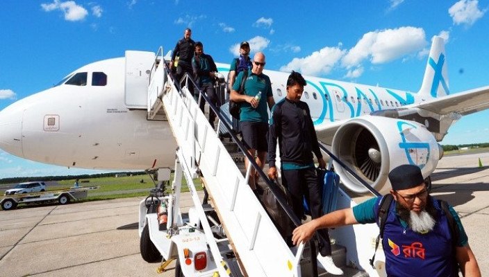 যুক্তরাষ্ট্রের স্থানীয় সময় শনিবার (বাংলাদেশ সময় রোববার সকাল) নিউইয়র্কের লং আইল্যান্ডের ম্যাকআর্থার এয়ারপোর্টে পৌঁছে বাংলাদেশ ক্রিকেট দল। ডালাসে শ্রীলংকাকে হারিয়ে বিশ্বকাপে শুভসূচনা করা বাংলাদেশ ক্রিকেট দল আগামীকাল সোমবার নিউইয়র্কের নাসাউ কাউন্টি ইন্টারন্যাশনাল ক্রিকেট স্টেডিয়ামে শক্তিশালী দক্ষিণ আফ্রিকার মুখোমুখি হবে বাংলাদেশ ক্রিকেট দল।
