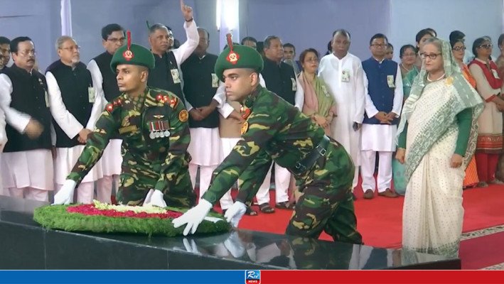 আজ রবিবার সকাল ৭টায় ধানমন্ডির ৩২ নম্বরে বঙ্গবন্ধু প্রতিকৃতিতে পুষ্পার্ঘ্য অর্পণ করে শ্রদ্ধা জানান প্রধানমন্ত্রী। এসময় প্রথমে প্রধানমন্ত্রী ও পরে আওয়ামী লীগের সভাপতি হিসেবে দলের শীর্ষ নেতাদের নিয়ে বঙ্গবন্ধুর প্রতিকৃতিতে শ্রদ্ধা জানান শেখ হাসিনা।