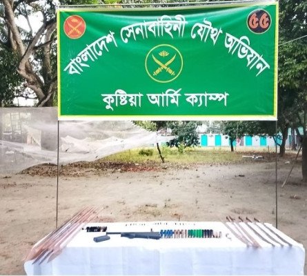কুষ্টিয়ায় সেনাবাহিনীর অভিযানে দেশীয় অস্ত্র উদ্ধার
