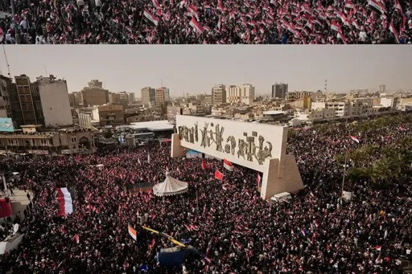 শনিবার বাগদাদ ও অন্যান্য শহরে ইরাকি শিয়া নেতা মুকতাদা সাদরের হাজার হাজার সমর্থক ইরানের বিরুদ্ধে মার্কিন-ইসরাইল যুদ্ধের প্রতিবাদে সমাবেশ করেছে। ইরাক অনিচ্ছাকৃতভাবে এই আঞ্চলিক উত্তেজনায় জড়িয়ে পড়েছে এবং এর ভূখণ্ডের ভেতরে হামলার শিকার হচ্ছে। বাগদাদের তাহরির স্কোয়ারে নারীসহ বিশাল জনতার ঢল রাস্তায় নেমে আসে এবং ‘না, না ইসরাইল’ ও ‘না, না আমেরিকা’ সহ বিভিন্ন স্লোগান দেয়। চল্লিশোর্ধ্ব এক বিক্ষোভকারী ধীরগাম সামির বলেন, এই অঞ্চলের দেশগুলোর বিরুদ্ধে আমেরিকা ও ইসরাইল যে আগ্রাসন চালাচ্ছে, তা কোনো সামরিক যুদ্ধ নয়, বরং একটি অর্থহীন যুদ্ধ।